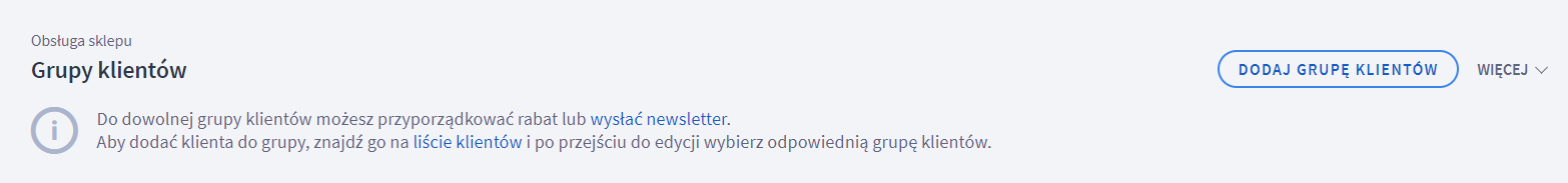 Aby stworzyć nową grupę klientów, należy wejść w Obsługa Sklepu > Grupy klientów > Dodaj grupę klientów.