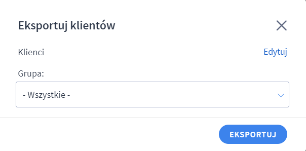 Raport klientów możemy wygenerować w podobny sposób. Wchodzimy w Obsługa Sklepu > Klienci > Więcej. Możemy wybrać wszystkich klientów lub grupę.