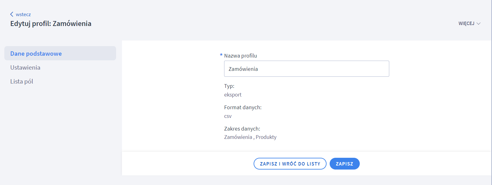 Możemy również edytować nazwę lub pola, takie jak numer, wartość czy status zamówienia. Aby to zrobić, wchodzimy w przycisk Więcej > Edytuj ten profil.