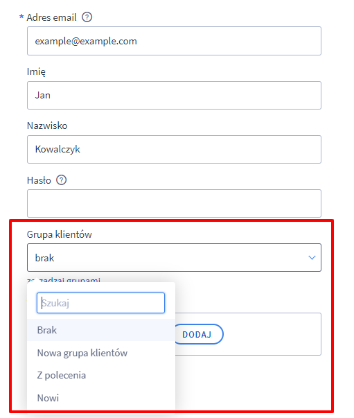 W polu Grupa klientów wybieramy grupę, do której chcemy przydzielić naszego klienta, a następnie klikamy Zapisz.