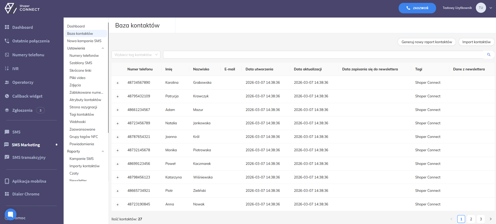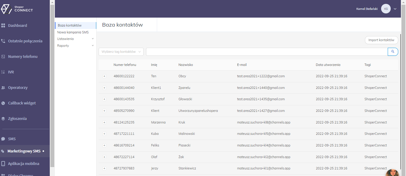 W bazie kontaktów znajdują się WSZYSTKIE kontakty z Twojego sklepu (również te zaimportowane automatycznie) oraz kontakty zaimportowane ręcznie.