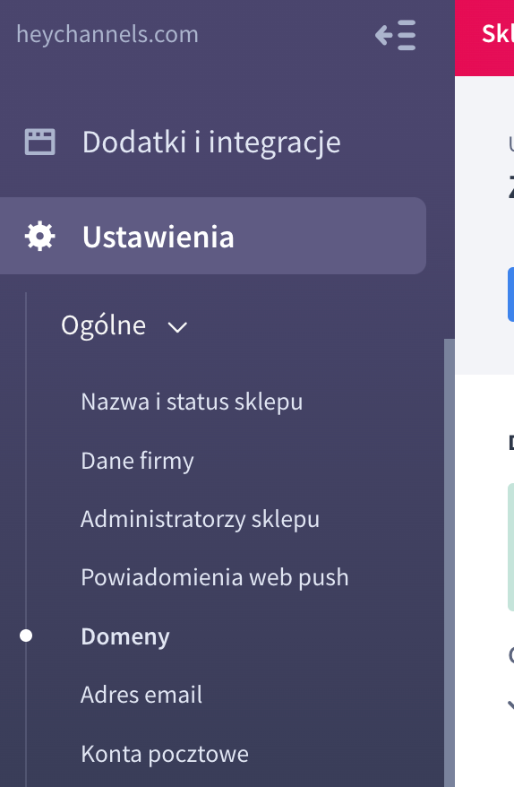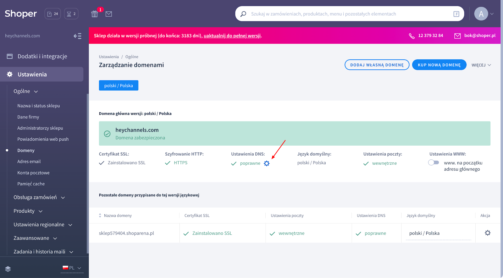 W panelu Shopera otwórz zakładkę Ustawienia -> Ogólne -> Domeny