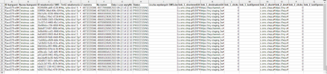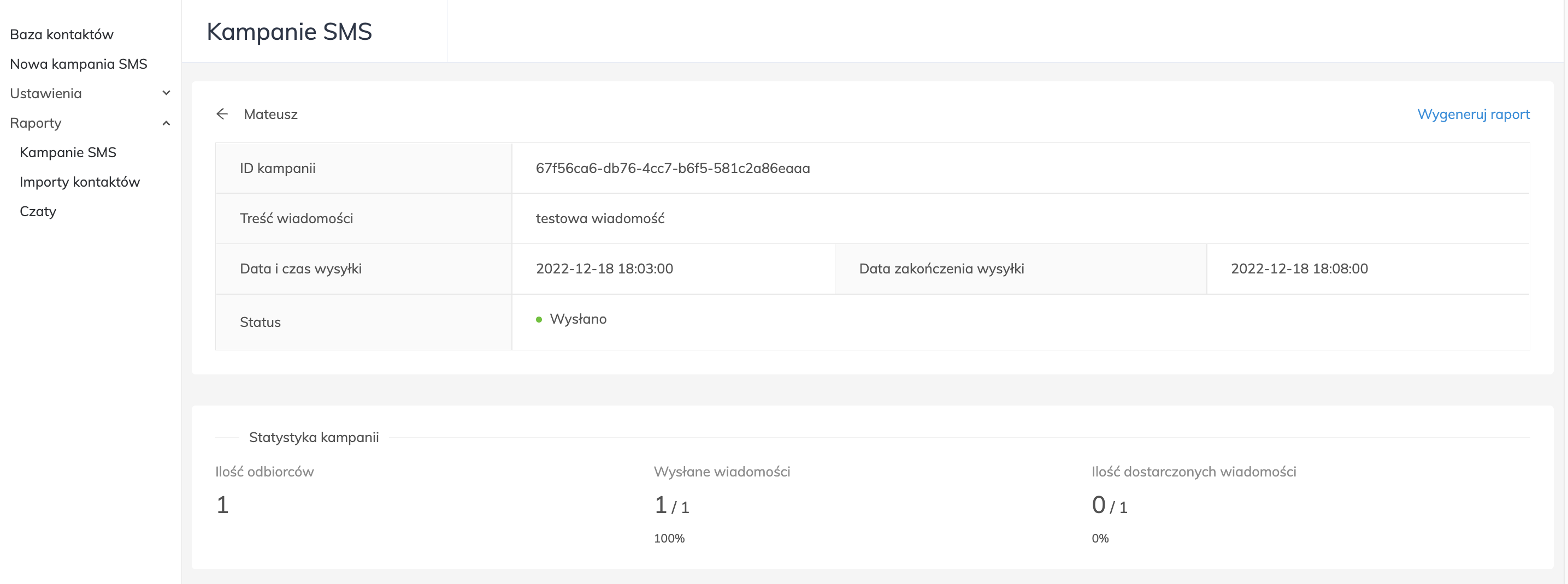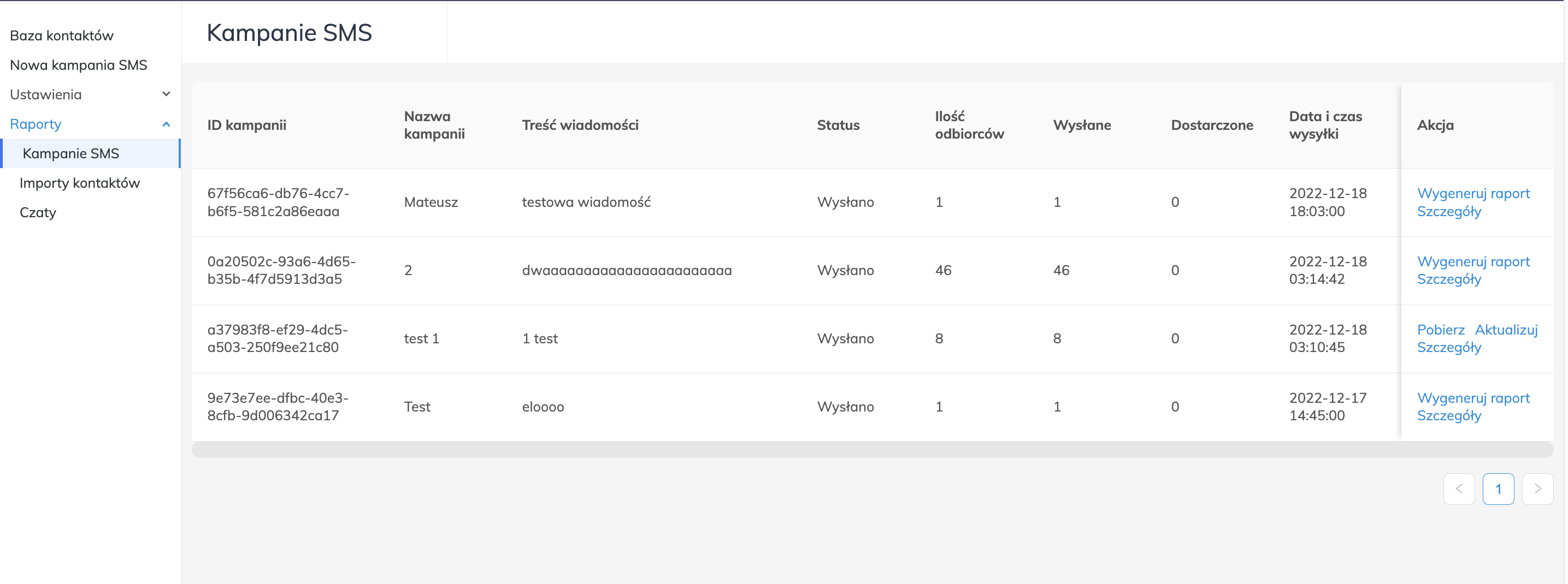 Znajdziesz tutaj listę twoich kampanii SMS z informacjami takimi jak: