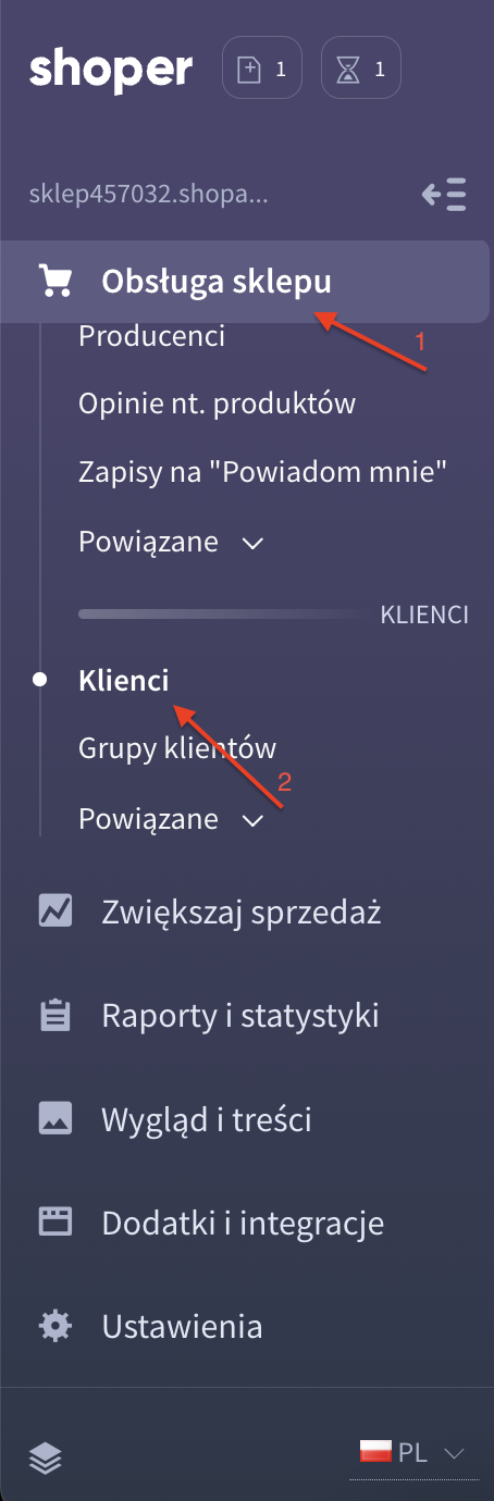 W sekcji „Obsługa sklepu” wyszukaj i kliknij na opcję „Klienci”