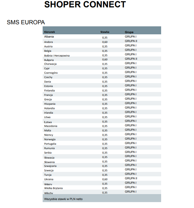 W Shoper Connect jest możliwość wysyłania SMSów oraz wykonywania połączeń poza Polskę. W przypadku SMSa, by doszedł on poprawnie do odbiorcy, musi być wysyłany z nadpisu lub też z numeru danego kraju. Wyjaśniając - jeśli nie mamy ustawionego nadpisu, a chcemy wysyłać SMSy do np. Wielkiej Brytanii, na swoim koncie Shoper Connect musimy zakupić numer brytyjski i z niego wysłać wiadomość.