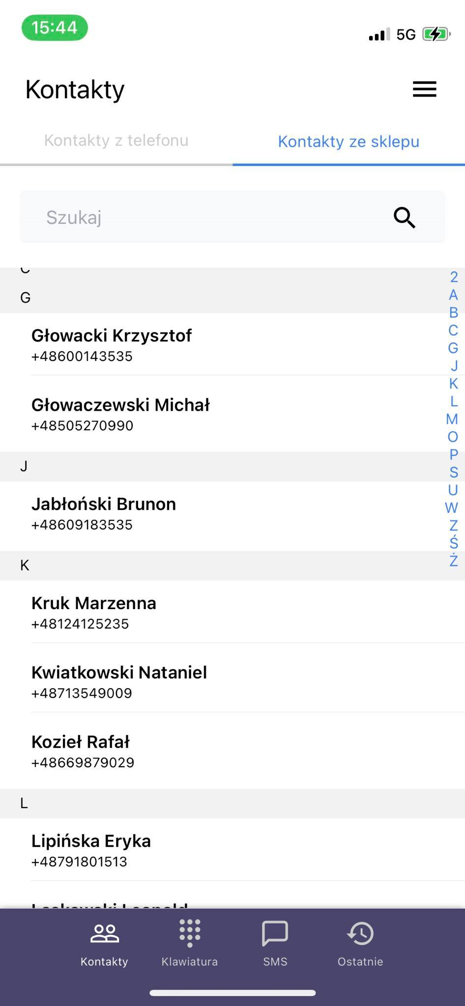 Po zalogowaniu się do aplikacji mobilnej Shoper Connect, listę zaimportowanych kontaktów znajdziesz w zakładce Kontakty.