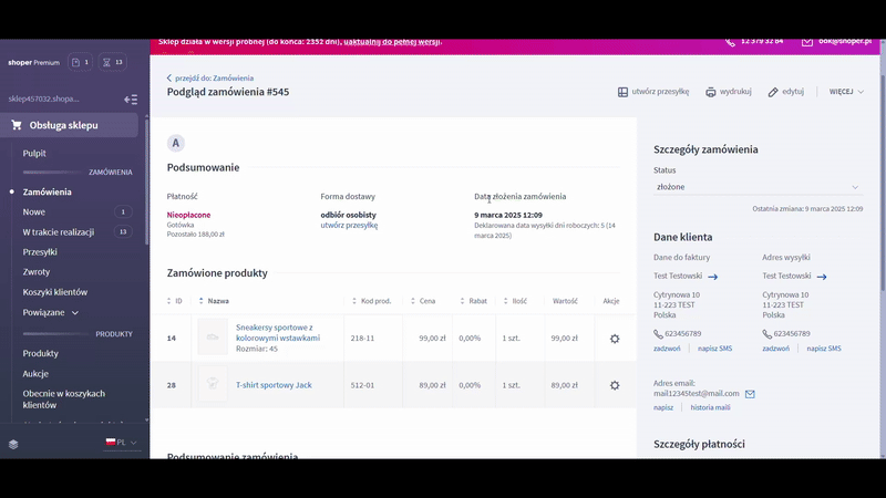 Następnie w podglądzie zamówienia zobaczysz opcję