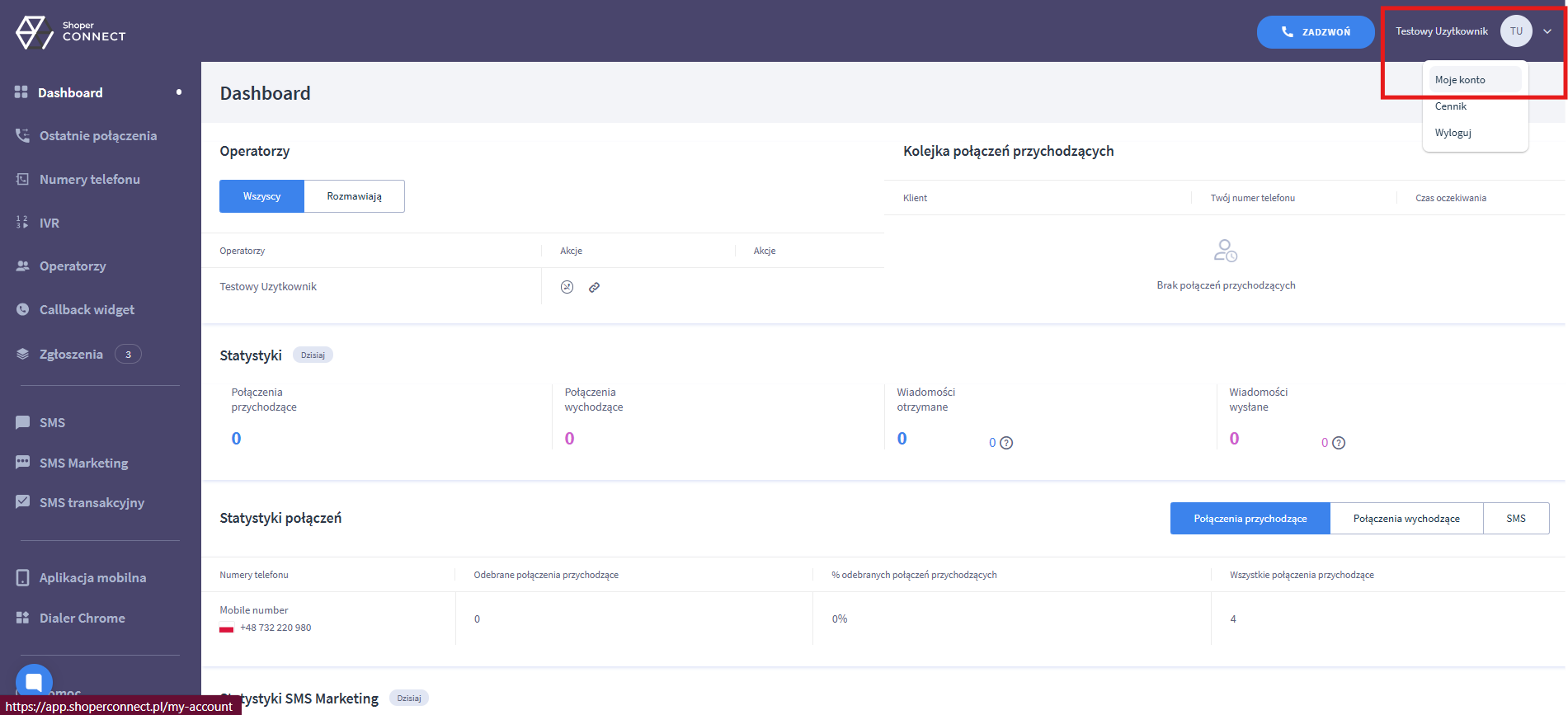 Po naciśnięciu strzałki w prawym górnym rogu zostaniesz przeniesiony do panelu o nazwie “Moje konto”. Znajdują się tutaj podstawowe informacje o koncie.