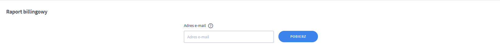 Tutaj znajdują się ustawienia powiadomień. Możesz włączyć opcję “Otrzymuj powiadomienia e-mail o niskim saldzie” naciskając suwak. Poniżej znajduje się puste pole, w które możesz wpisać wartość salda w zł, przy którym zostanie wysłany alert email. W pole “Adres e-mail” należy wpisać swój email, na który będą przychodzić powiadomienia.