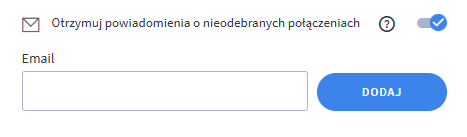 W tym miejscu możesz również ustawić opcję ‘Nie odbieraj połączeń przychodzących’ jak również ‘Otrzymuj powiadomienia o nieodebranych połączeniach’. W przypadku powiadomień o nieodebranych połączeniach należy wpisać email, na który ma przychodzić ta informacja: