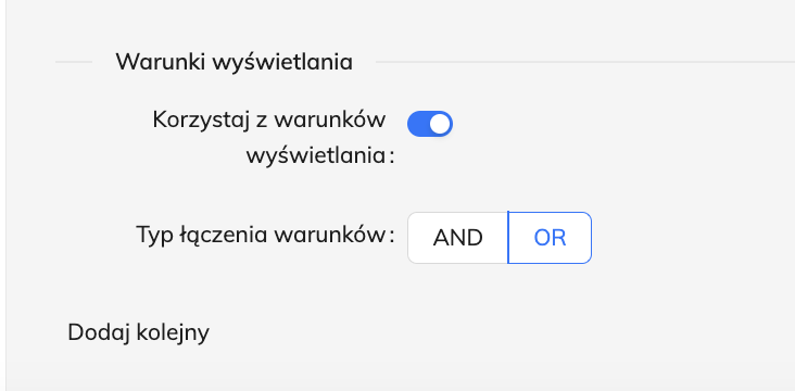 "AND" Opcja ta sprawi, że popup wyświetli się tylko wtedy, gdy wszystkie warunki zostaną spełnione.